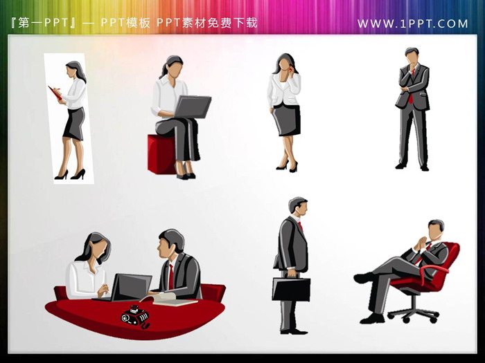 这是11张PowerPoint2003风格,黑红配色的职场人物PPT剪切画。.PPTX格式;