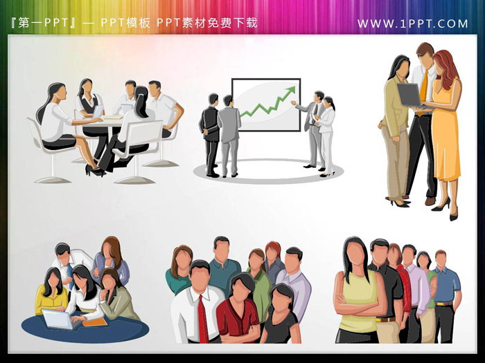 这是6张彩色商务团队PPT剪切画素材,.PPTX格式;
