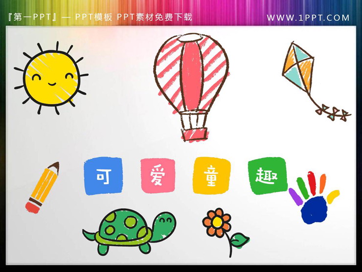 素材包括:卡通风格的小熊、爱心、小花、彩虹、星星月亮、太阳、小乌龟、小蜗牛、小房子、小树、蝴蝶、七星瓢虫、小狗、小鸡、小兔子、雨伞、小女孩、小男孩等。.PPTX格式;