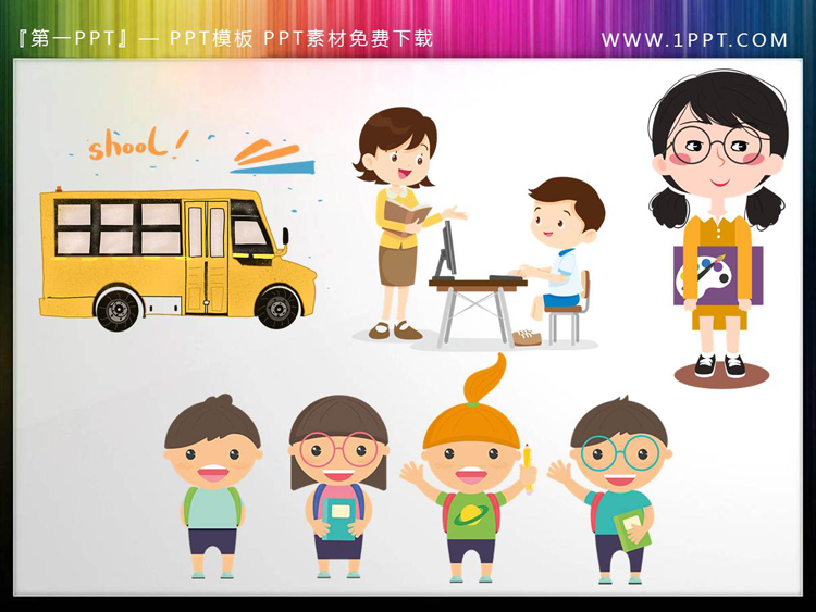 这是一组卡通老师学生校车PPT素材。PPT素材包括:黄色校车、老师、小学生等。.PPTX格式;