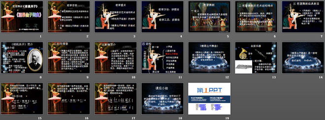 通过本节课的学习,使同学们了解到芭蕾舞剧的艺术特点、《胡桃夹子》的结构、《糖果仙子舞曲》的曲式结构。