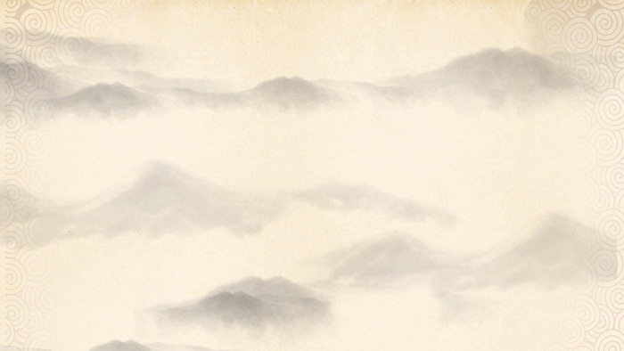 关键词:淡雅黄色、水墨山水、祥云图案PowerPoint背景图片,.jpg格式;