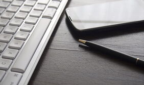 钢笔键盘手机办公桌面PPT背景图片