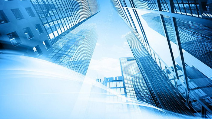 这是一张蓝色高楼大厦幻灯片背景图片;