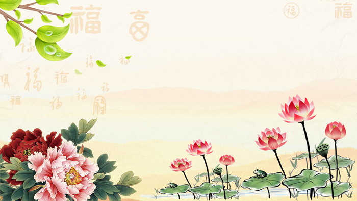 关键词:中国福字幻灯片背景图片,荷花幻灯片背景图片,牡丹PowerPoint背景图片,.jpg格式;