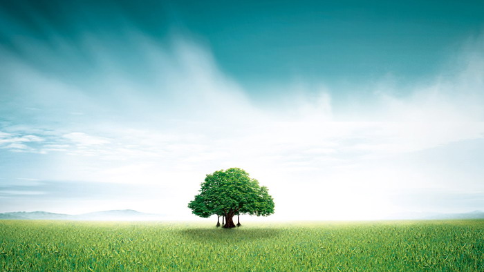 唯美草地绿树PPT背景图片
