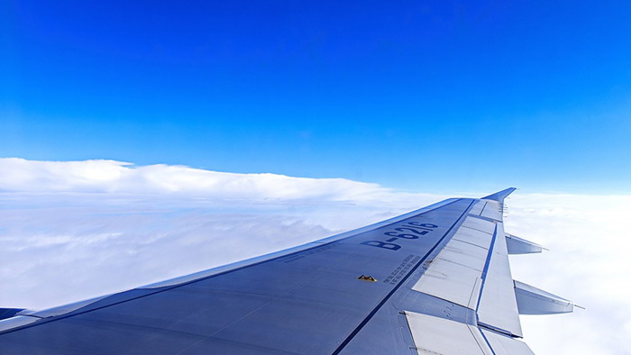 关键词:蓝天白云、天空幻灯片背景图片,飞机机翼PowerPoint背景图片,.jpg格式;