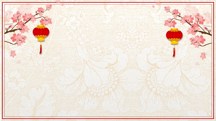 关键词:粉色梅花、红色灯笼、古典花纹、喜庆新年PowerPoint背景图片,精美春节幻灯片背景图片,.jpg格式;