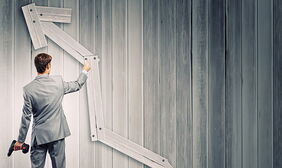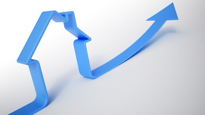这是 一张简洁蓝色房屋箭头PPT背景图片;