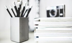 黑白笔筒记事本PPT背景图片