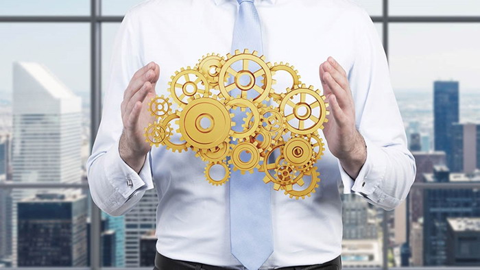 商务人物与齿轮组PPT背景图片