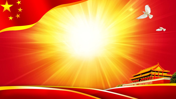 关键词:五星红旗、天安门、金色光芒PowerPoint背景图片,党政、党课、党建工作幻灯片背景图片,.jpg格式;