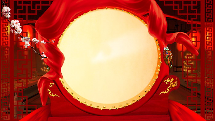 关键词:古典木质边框、红色灯笼、梅花、大鼓PowerPoint背景图片,春节、元旦、新年幻灯片背景图片,.jpg格式;