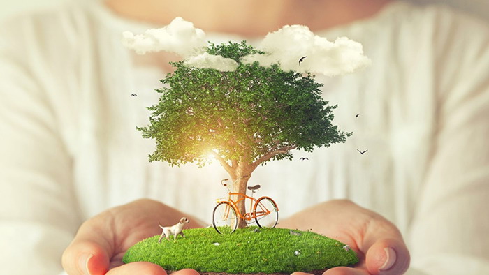 关键词:手捧绿树、小狗、自行车、草地PowerPoint背景图片,环境保护幻灯片背景图片,.jpg格式;