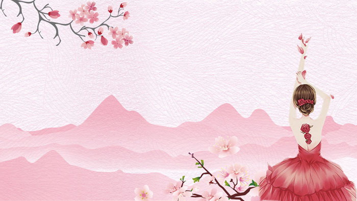 关键词:粉色群山、浪漫桃花、靓丽舞者幻灯片背景图片,.jpg格式;