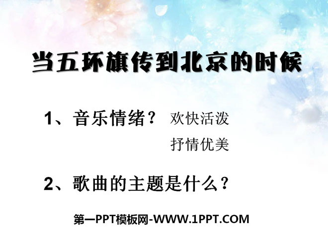 关键词:当五环旗传到北京的时候教学课件,四年级上册音乐PPT课件下载,四年级音乐幻灯片课件下载,当五环旗传到北京的时候PPT课件下载,.PPT格式;