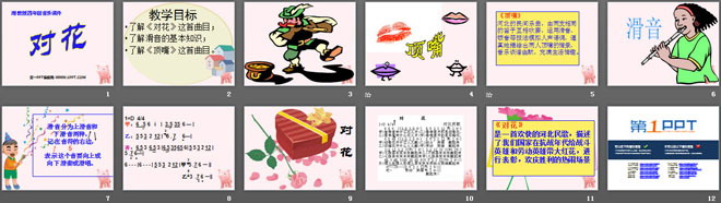 关键词:对花教学课件,四年级上册音乐PPT课件下载,四年级音乐幻灯片课件下载,对花PPT课件下载,.PPT格式;
