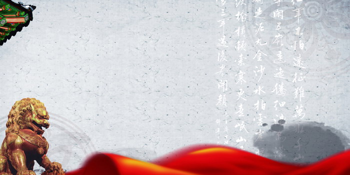 关键词:石狮子、古建筑、红色彩带、古典花纹PowerPoint背景图片,古典风格幻灯片背景图片免费下载,.jpg格式;