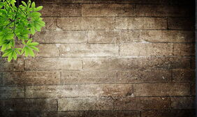 这是4张砖墙PPT背景图片。灰色砖墙使用了清新绿叶,与白色文本框装饰。非常实用。.png格式;