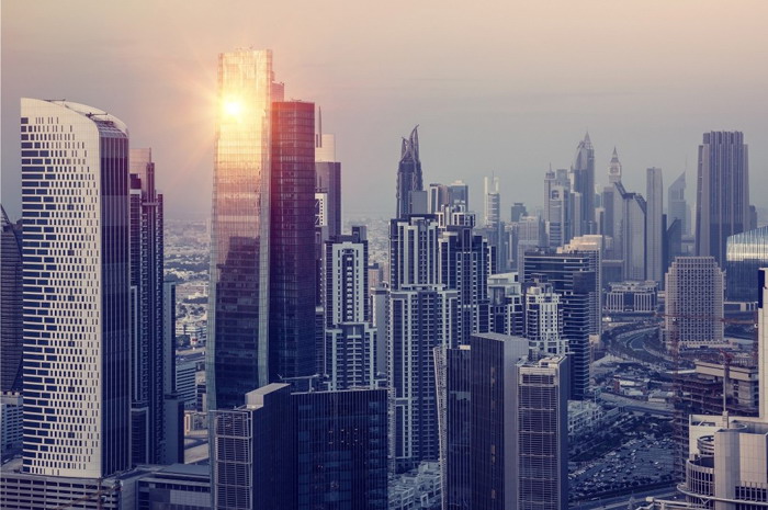 国外高楼耸立的现代化城市与桥梁PPT背景图片
