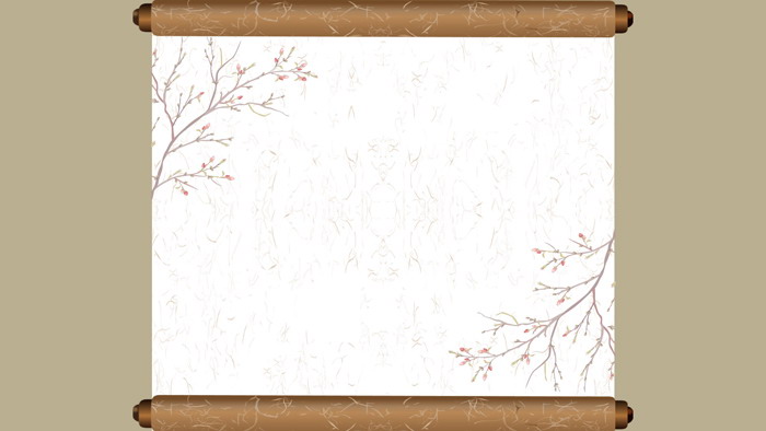 这是三张精美中国风动态卷轴PPT背景图片,古典棕色卷轴搭配中国风花枝背景。.PPTX格式;
