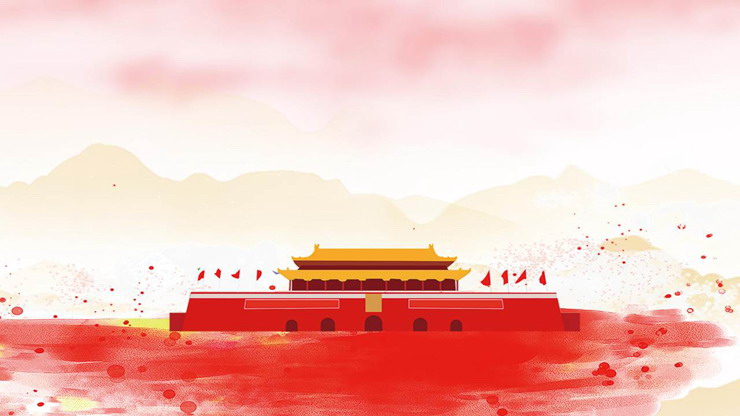 水彩手绘天安门国庆节PPT背景图片