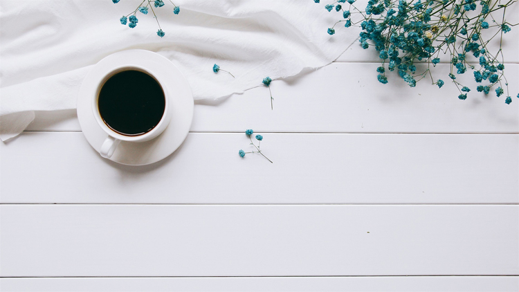 简洁咖啡杯鲜花书籍PPT背景图片