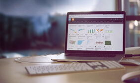 笔记本电脑和键盘办公桌面PPT背景图片