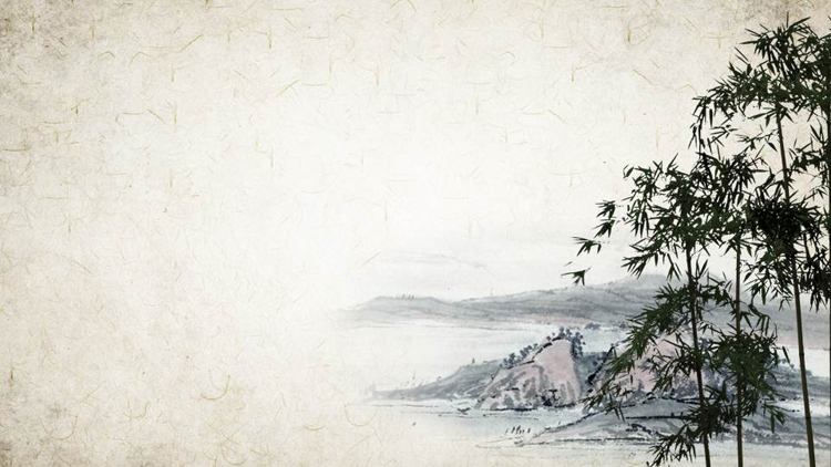 古典纸张水墨山水竹子PPT背景图片
