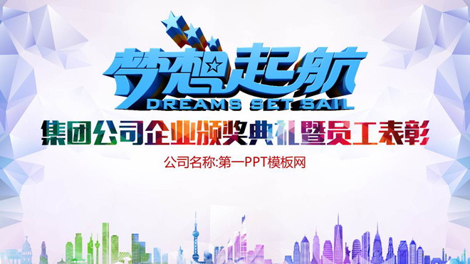 这是一套“梦想起航”企业公司颁奖典礼暨员工表彰大会PPT模板,第一PPT模板网提供精美企业公司年会幻灯片模板免费下载;