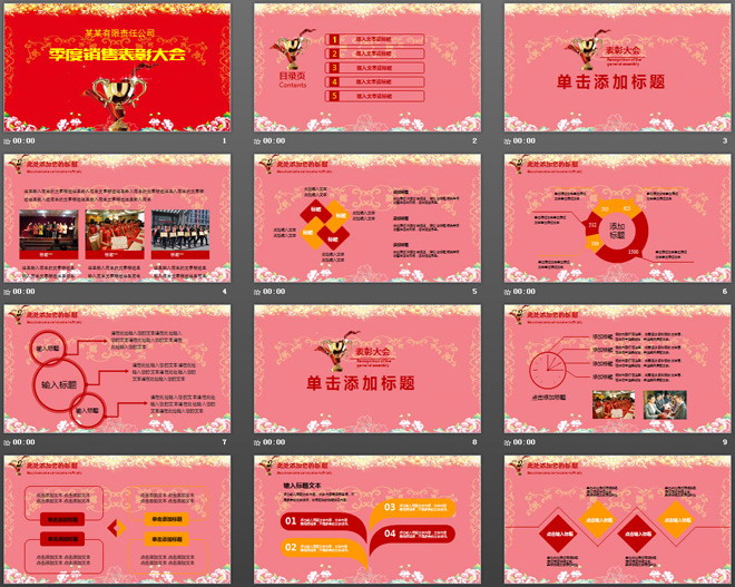 这是一套企业公司年度季度销售颁奖表彰大会PPT模板,第一PPT模板网提供表彰大会、庆功会幻灯片模板免费下载;