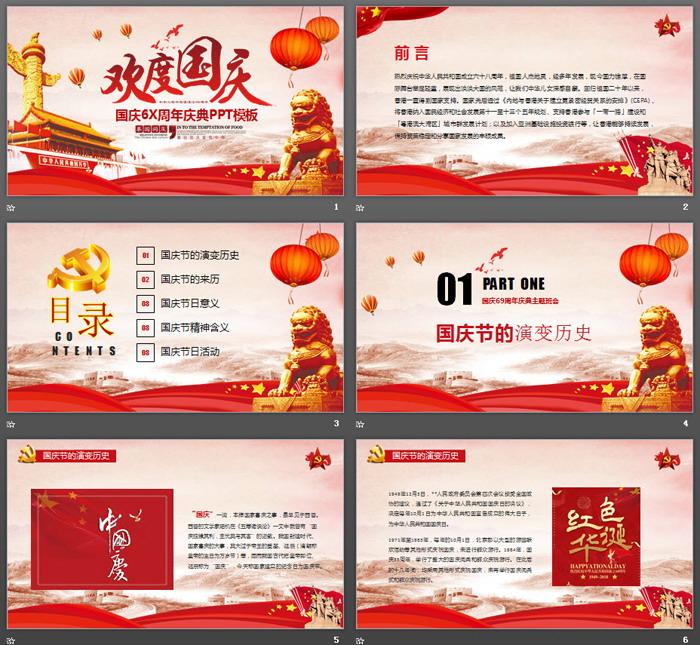 这是一套大气喜庆的《欢度国庆》PPT模板,共26张。