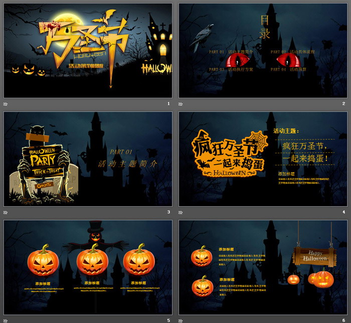 这是一套带有恐怖气氛的万圣节PPT模板,共24张。