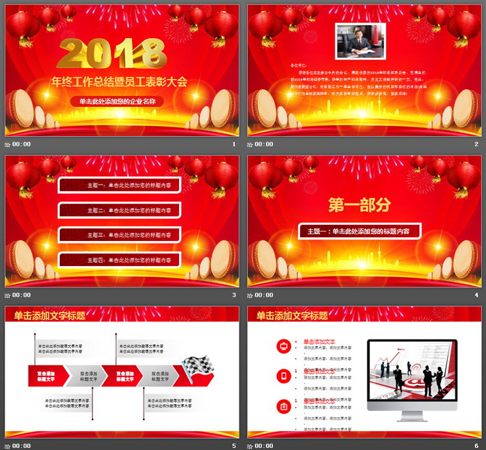 这是一套红色喜庆风格的,企业员工表彰大会PPT模板,共27张;