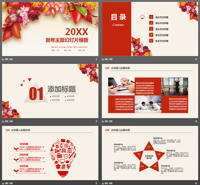 这是一套清新鲜花背景的新年PPT模板,共23张;