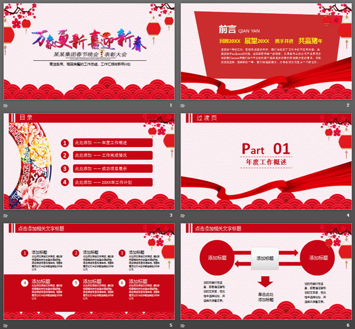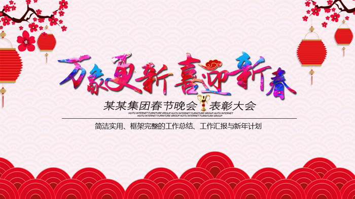 这是一套《万象更新喜迎新春》主题的,业年会PPT模板,共24张;