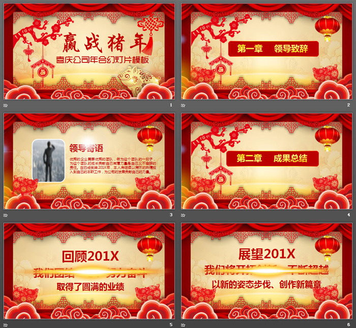 这是一套《赢战猪年》主题的,公司新年年会PPT模板,共24张;