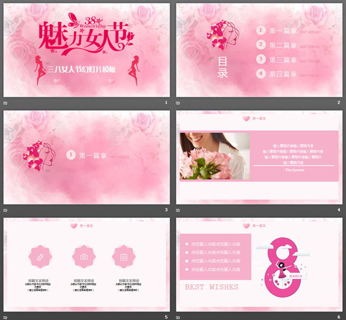 这是一套粉色魅力38女人节PPT模板,共24张;