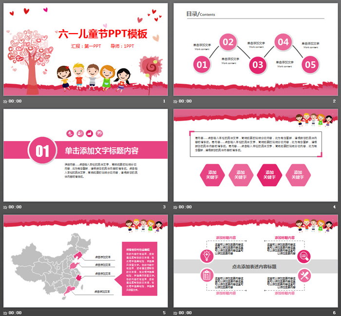 这是一套粉色卡通小朋友背景的,六一儿童节PPT模板,共27张;