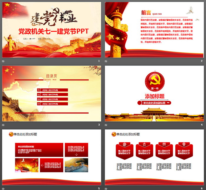 关键词:大气建党节PowerPoint模板,动态建党伟业PPT模板,永远跟党走幻灯片模板,.PPTX格式;