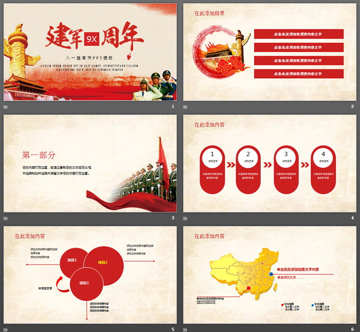 这是一套解放军天安门背景的,建军节PPT模板,共25张;