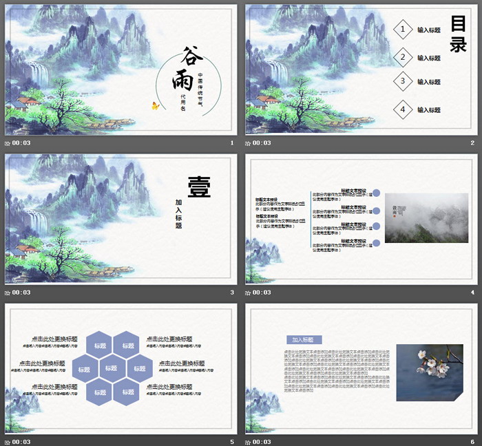 这是一套水墨山水画背景的,谷雨节气PPT模板。共25张;