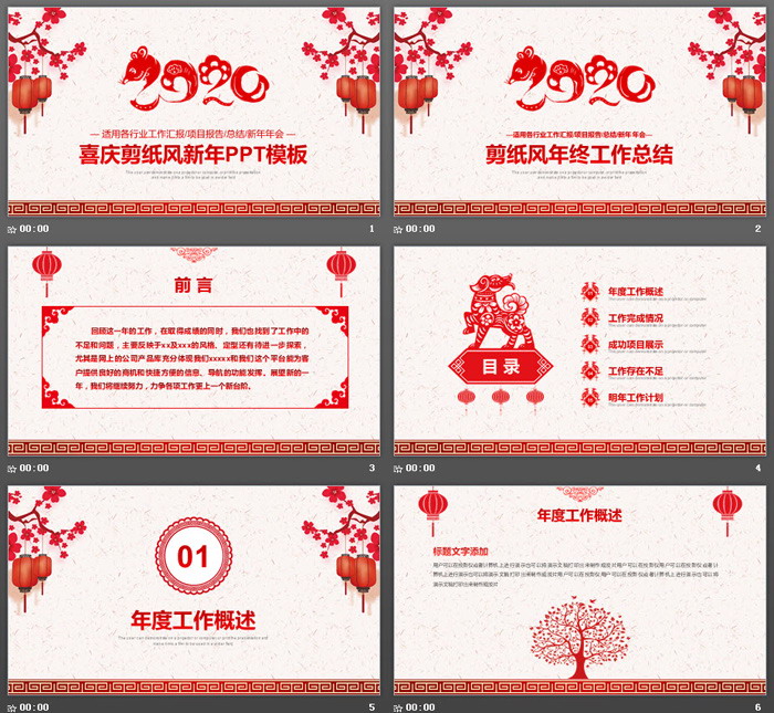 这是一套剪纸风格的2020鼠年PPT模板,共24张;