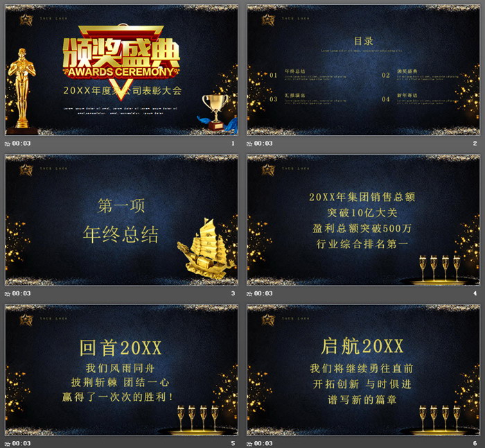 这是一套大气奢华的,企业年会颁奖盛典PPT模板,共24张;