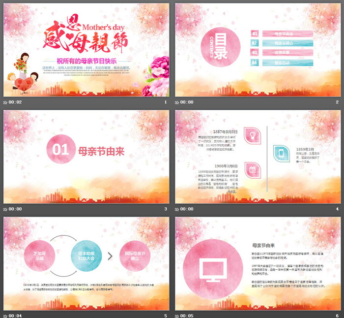 这是一套精美母亲节主题班会PPT模板,共19张;