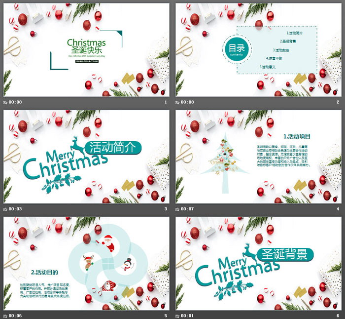 这是一套简洁小清新风格的,圣诞节活动策划PPT模板。共24张;
