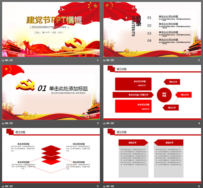 本模板适合用于制作庆祝建党节PowerPoint,以及党课、党建工作汇报PPT等。.PPTX格式;