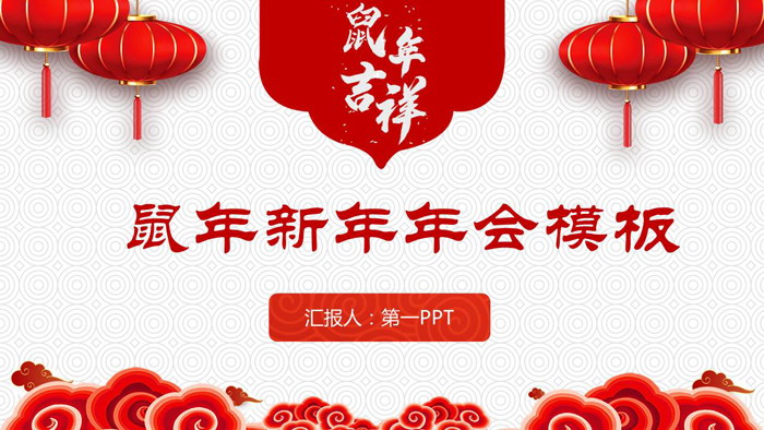 这是一套灯笼祥云背景的,鼠年新年年会PPT模板,共25张;
