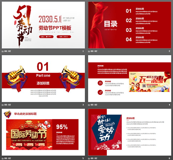 这是一套红色大气,五一劳动节PPT模板,共24张;