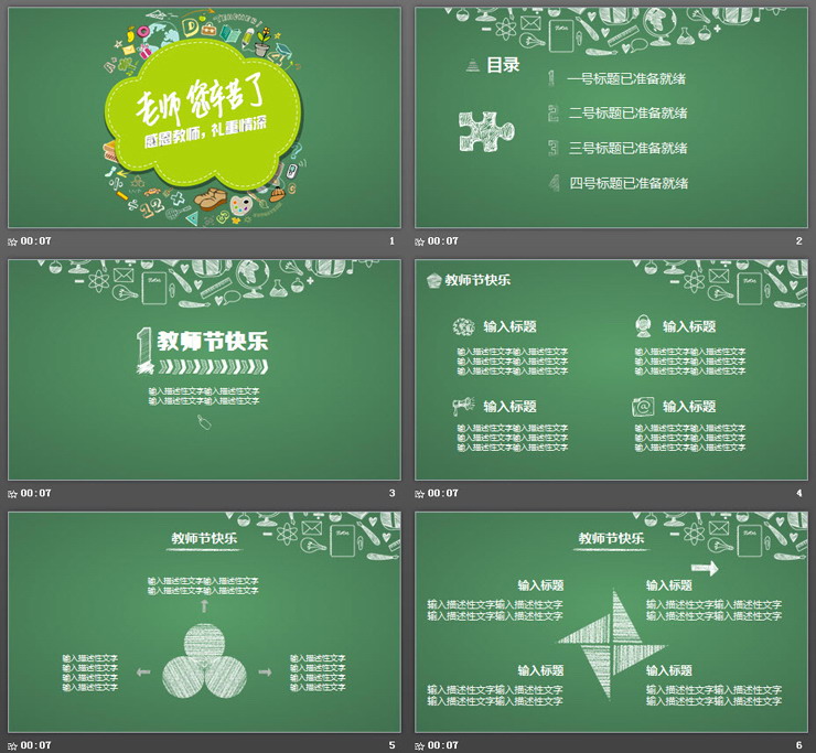 PowerPoint模板内容页,由23张白色手绘PPT图表,搭配教师节文案排版。.PPTX格式;